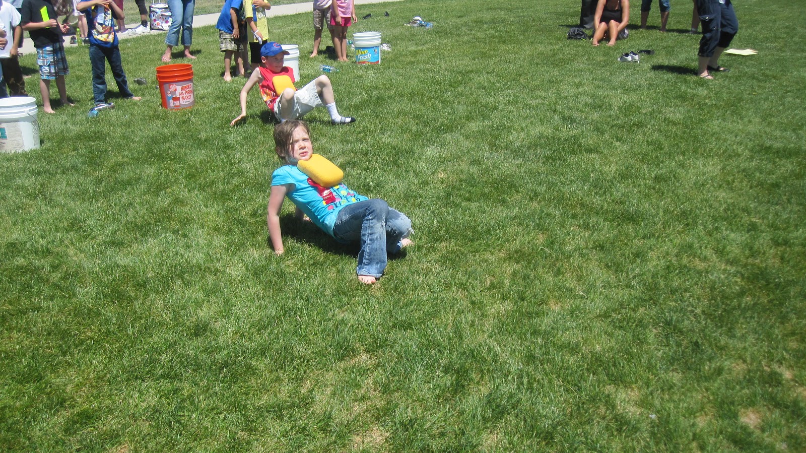 This year for field day I was in charge of the Sponge Bob event and got to get all the kids wet. I had Larke and Rush with me all day and they really were very good considering. The grandma lady at the next event over let Rush and Larke play in the baby pool in between kids and I probably would have gone crazy without her. The kids all had a great time this year winning ribbons and generally frolicking.